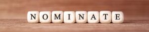 Word NOMINATE made with wood building blocks