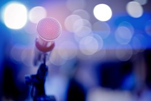 microphone on stage, speaker, conference